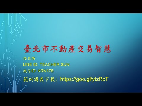 「孫在陽」直播-大數據分析之臺北市不動產交易智慧-04.戰情中心與智慧 面對日新月異的大數據工具,有時候很難跟上這節奏。Microsoft Power BI讓大家可以簡易的製作大數據分析。用 Exce...
